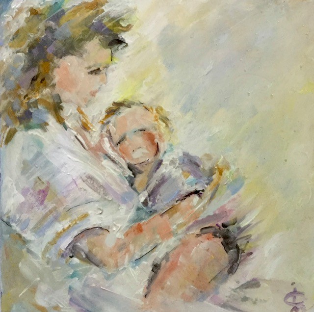 “Mother and Child” A small painting on Tile, unframed. “Mother and Child” A small painting on Tile, unframed. -