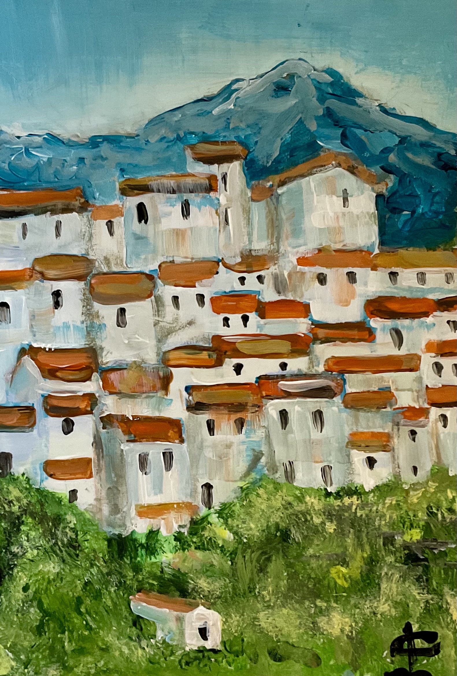 I am presently working on a series of work, based on the beauty of the Spanish Andalusian countryside. For this project, I am painting on varnished ceramic tiles, which I find exciting, as the colours and textures are far more expressive and brighter than on canvas, I find.